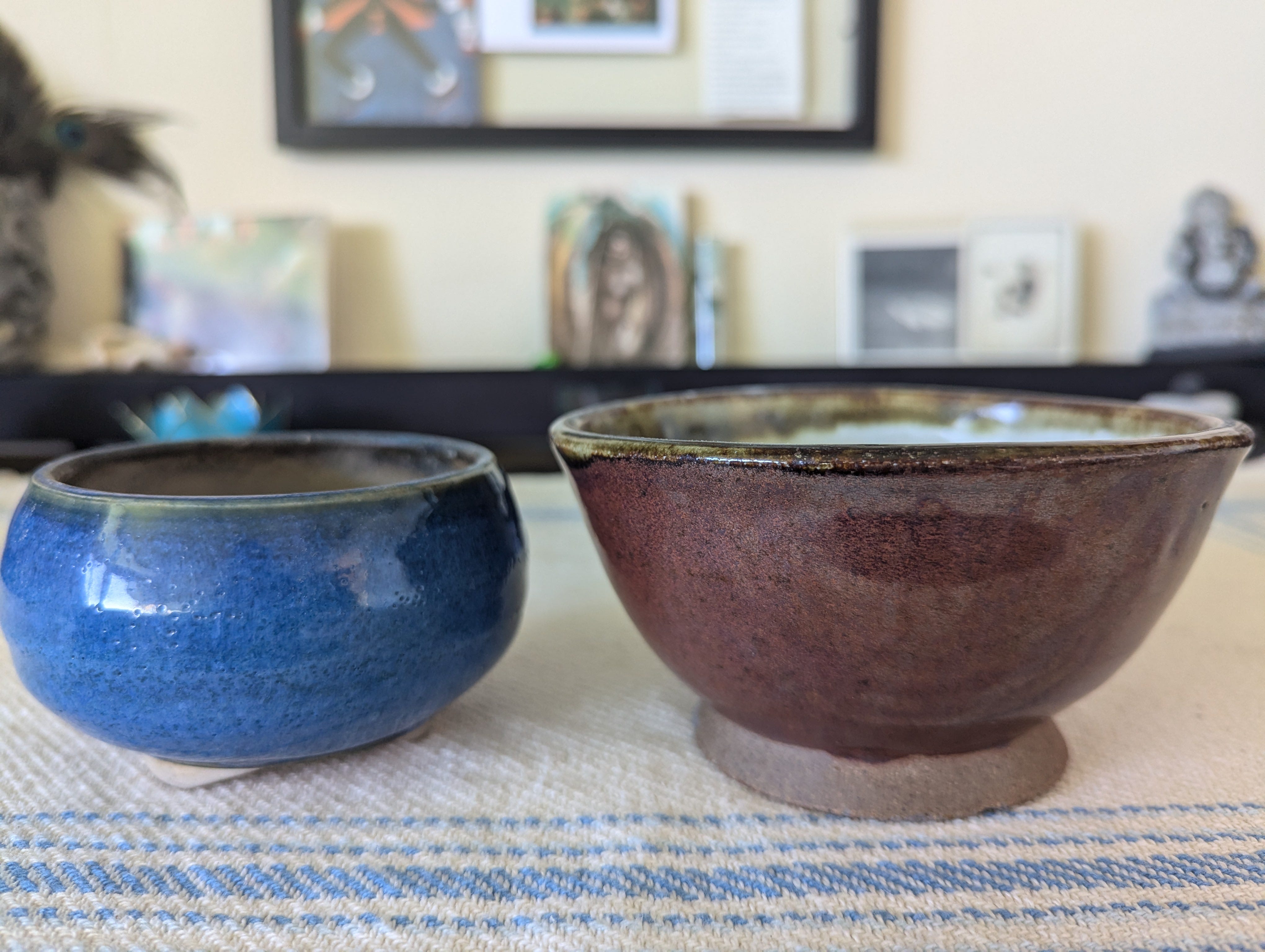 If you’re sourcing your own censer, anything smaller than 2.5’’x 2.5’’ will be too difficult to use. I prefer to use a larger censer like this ceramic one that I bought from Shoyeido, which is 2 inches tall, 4 inches wide, and stands on 3 little feet, ensuring that the hottest part of the bowl does’t touch any vulnerable surfaces. You can also use any bowl made of a heat-safe material such as metal, soapstone, basalt, or ceramic. For example, I repurposed a ceramic soup bowl into a censer.